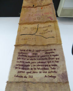 En Culiacán, Sinaloa, se vive entre conflictos armados desde el 9 de septiembre de 2024. En ese contexto nace esta obra: una memoria que no se borra, una herida abierta a la que llamo Culiacanazo. Aquello que estremece a una ciudad entera no solo deja huellas en sus calles, sino también en los cuerpos y en las emociones de quienes la habitan. Esta instalación recoge sus testimonios, bordados como quien cose una herida sobre un cuerpo marcado y lastimado que, cuando sane, será cicatriz. En Culiacán vivimos al límite: emociones contenidas hasta el desborde y una comunidad obligada a hacer vida normal cuando ya nada es normal. En esta obra se cruzan los límites entre el silencio y la palabra, lo privado y lo colectivo, lo visible y lo oculto. El bordado —acto lento, cuidadoso y silencioso— se convierte en resistencia. Un grito que se borda desde el cuerpo, con la esperanza de que traspase los límites territoriales. Porque aquí hacen como que no pasa nada. Pero sí pasa. Y quienes lo vivimos no somos números en una estadística: somos cuerpos, somos almas, somos personas. No es sequía: es violencia sin límites.
