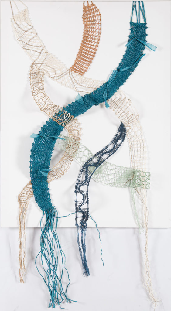 Materiales: Lino encerado, rafia reciclada, cuerda de cañamo, lino.
