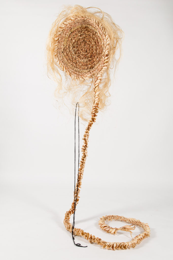 Materiales: Hoja de la mazorca de maiz, sisal en mecha, hilo de lana