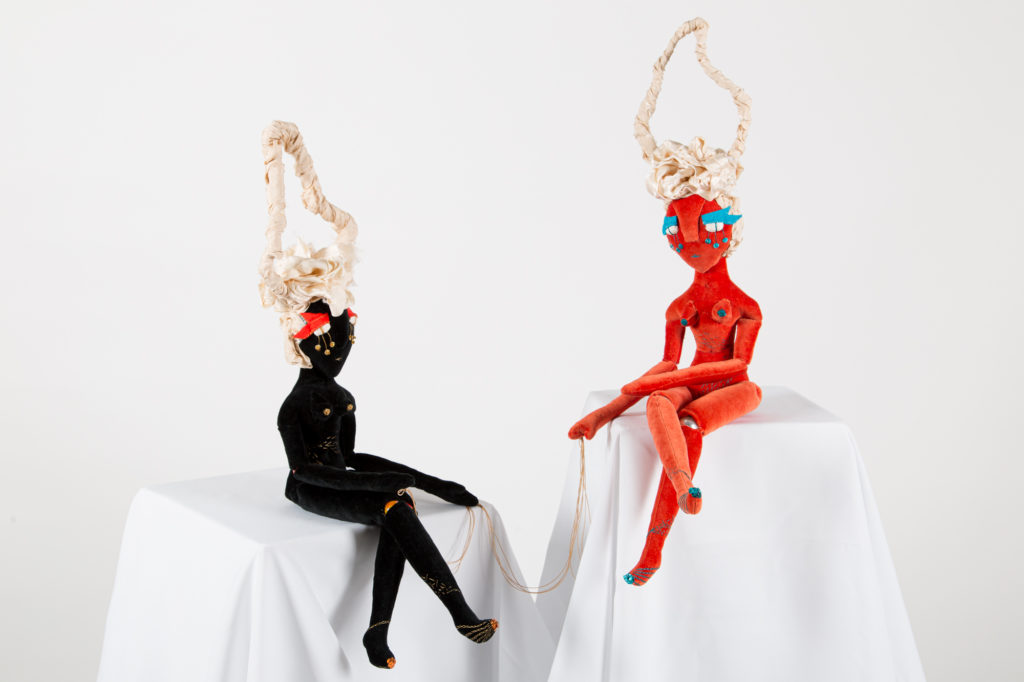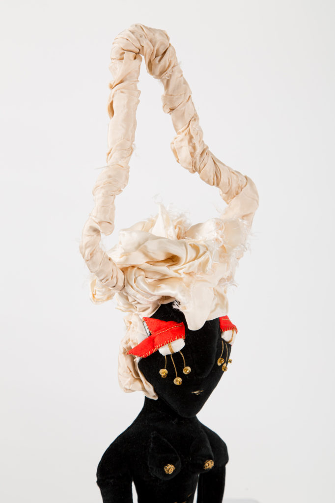 Materiales: Telas antiguas y adornos recuperados. Sueño lúcido, palabras de la Nana Makuna Mawé, canción de Ismael Quintana: «Traigo la llave.»