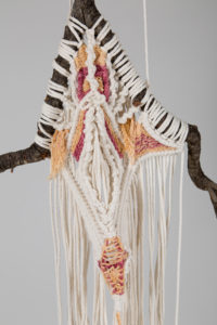 Artista textil enfocada en macramé creativo. Su alma inquieta y exploradora hace que necesite crear desde la libertad y el descubrimiento de nuevas maneras de manejar el hilo, utilizándolo como herramienta de autoconocimiento y creando sinergias amorosas, tiernas y mágicas. Es además una de las creadoras del Espacio Entretejidas