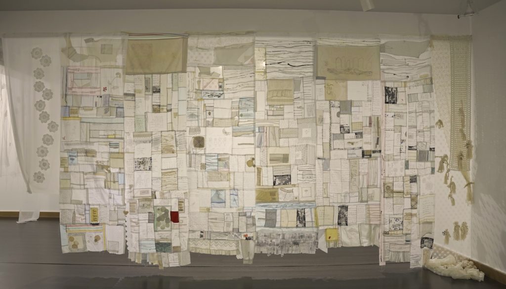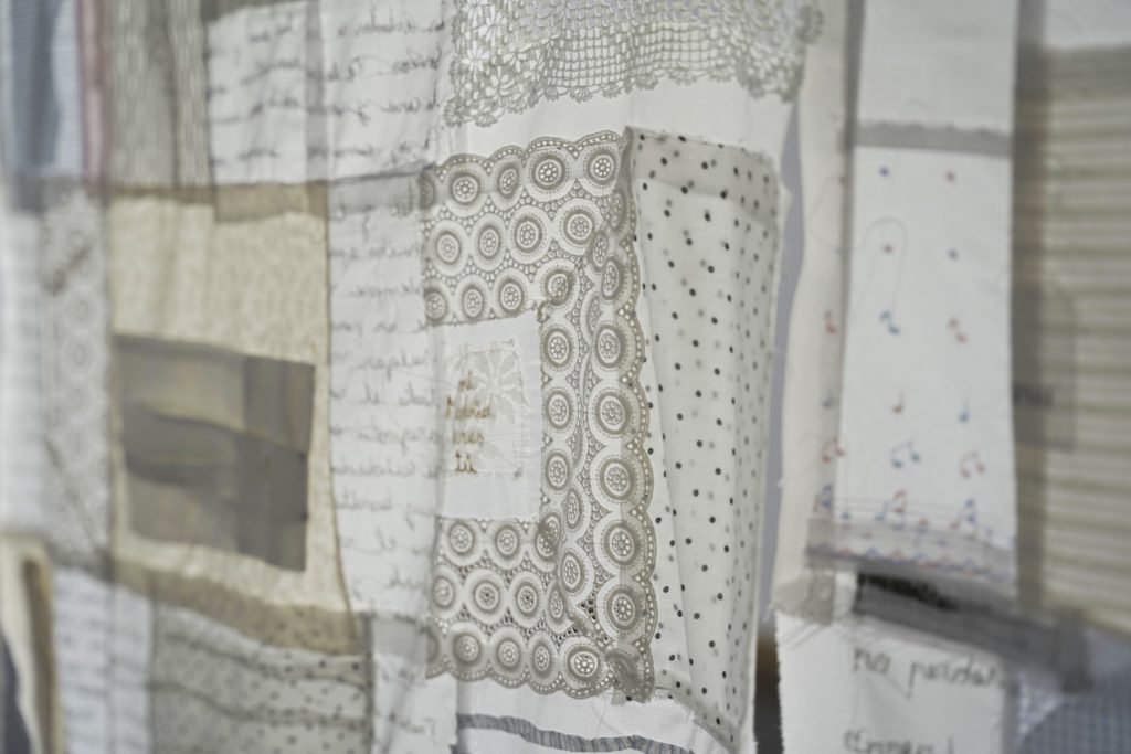 Acompañar y cuidar a mi madre enferma en ese transitar complicado hacia su viaje definitivo, ha sido vivir al borde de lo incierto, donde los días se llenaron de preguntas sin respuesta y las noches me instalaron en la intensa conciencia de lo efímero, al límite de una marea emocional que parecía no dejarme respirar. Bordeando ese límite entre el dolor y la pérdida existe una fuerza que muestra con claridad el valor de lo esencial de la vida, el verdadero amor que reside en las cosas más pequeñas y los momentos más sencillos. En Memoria de una despedida está presente un duelo sostenido en el tiempo hecho con la herencia de telas, hilos, ropa, diarios… de mi madre. Un lugar de memoria lleno de huellas emocionales, que han ido transformando ese dolor y el miedo en pequeños tesoros nuestros, para hacer más llevadera la herida del adiós.
